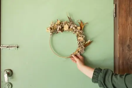 ייבוש הפרחים ושזירה שלהם על החישוק.