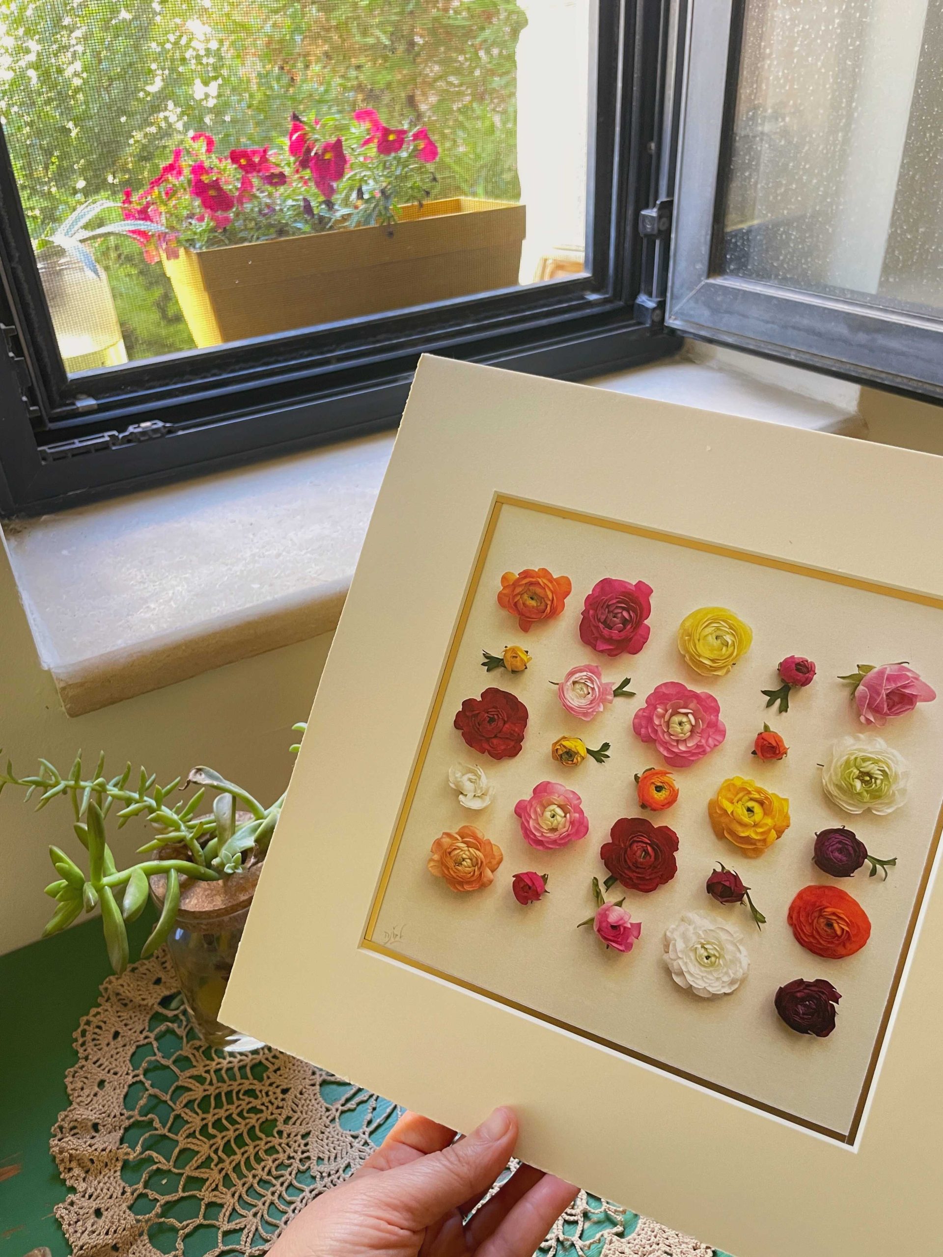התמונה היא צילום שלי של קומפוזיציה שיצרתי מפרחים אמיתיים של נוריות. עבודת יד ייחודית ומקורית. תתחדשו!